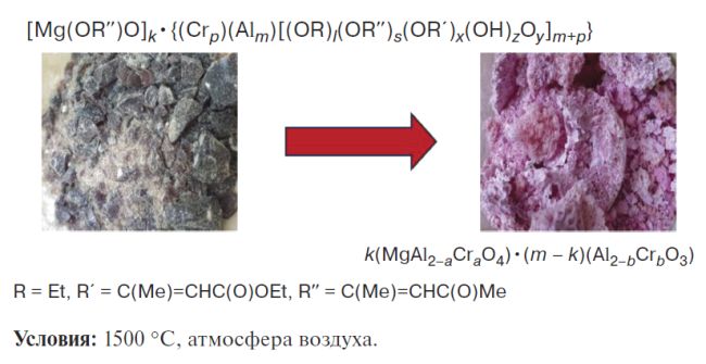 Изучена соконденсация органоалюмоксанов с Mg(acac)2 и Cr(acac)3 в растворе в Et ОH. Взаимодействие компо ненто в при ~70 °C и мольных отношениях Al/Mg = = 2—150 и Al/Cr = 40—200 протекает с образованием растворимых керамообра зующих хромсодержащих магнийоксаналюмоксанов — предшественников алюмо магниевой керамики, модифицированной хромом. Введение большего количества Cr(acac)3 (Al/Cr < 40) приводит к образованию в реакционной массе кристаллов, по данным сканирующей электронной микроскопии, вероятного состава Сr0.86Al0.11Mg0.03(acac)3. Исследован процесс термотрансформации органохромоксан-магнийоксаналюмоксанов в керамические фазы при температурах 700, 900 и 1500 °С. Синтезированные хромсодержащие магнийоксаналюмоксаны являются предшественниками компонентов (связующие для матриц, волокна, покрытия, порошки и т.п.) модифицированных хромом керамокомпозитов шпинельного и смешанного шпинельно-корундового составов.