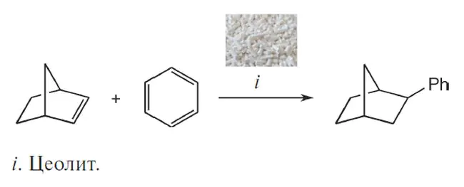 Впервые проведено алкилирование бензола норборненом с образованием экзо-2-фенилнорборнана (экзо-2-фенилбицикло[2.2.1]гептана) в присутствии кристаллических и аморфных алюмосиликатных катализаторов. При избытке норборнена образуются также продукты ди- и трициклоалкилирования бензола. При переходе от аморфных к кристаллическим алюмосиликатам повышается селективность процесса. Подобраны оптимальные условия, позволяющие получать экзо-2-фенилнорборнан с выходом более 95%.