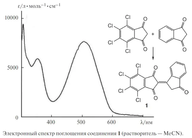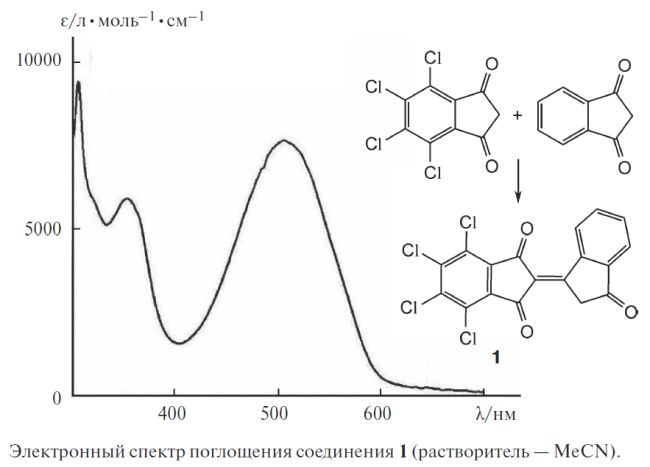 Конденсацией соответствующих 5,6-дигало-1H-инден-1,3(2H)-дионов осуществлен первый синтез замещенных в бензольном кольце биндонов — 5,5´,6,6´-тетрагало[1,2´-биинденилиден]-1´,3,3´(2H)-трионов (галоген — Cl, Br, F). 4,5,6,7-Тетрахлор-1H-инден-1,3(2H)-дион остается неизменным в условиях реакции, однако при взаимодействии с незамещенным 1H-инден-1,3(2H)-дионом дает 4´,5´,6´,7´-тетрахлор-[1,2´-биинденилиден]-1´,3,3´(2H)-трион. Причины такого поведения выявлены с помощью квантово-механических расчетов. В ЭСП продукта конденсации двух различных 1H-инден-1,3(2H)-дионов наблюдается интенсивный максимум поглощения при 505 нм, отсутствующий или слабо выраженный у симметричных биндонов, что свидетельствует о наличии внутримолекулярного переноса заряда между незамещенным бензольным циклом и электроноакцепторным фрагментом тетрахлорбензола. Обнаруженные свойства делают 4´,5´,6´,7´-тетрахлор[1,2´-биинденилиден]-1´,3,3´(2H)-трион перспективным для использования в качестве концевых групп в солнечных ячейках с объемным гетеропереходом.