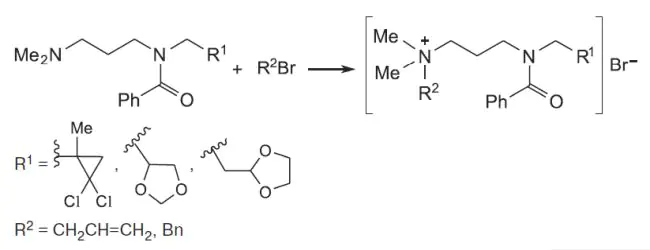 На основе N,N-диметилпропилендиамина в условиях термического нагрева синтезированы четвертичные соли аммония, содержащие 1,3-диоксолановый и гем-дихлорциклопропановый фрагменты. Полученные четвертичные соли аммония обладают антиагрегационной активностью на уровне ацетилсалициловой кислоты по значению показателя максимальной амплитуды агрегации, при этом они эффективнее препарата сравнения пролонгируют реакцию высвобождения тромбоцитов, что может свидетельствовать об их более широком антитромботическом потенциале.