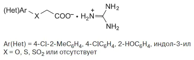 Взаимодействием арилхалькогенилуксусных кислот 1a—e и карбоната гуанидиния 2 синтезированы арилхалькогенилацетаты гуанидиния 3a—e общей формулы ArXCH2COO–•H2+N=C(NH2)2, где X = O, S, SO2 или отсутствует. Строение синтезированных соединений установлено с помощью ИК-спектроскопии и спектроскопии ЯМР 1H и 13C. Расчеты in silico свидетельствуют о том, что соли 3a—e обладают синтетической и биологической доступностью, подобием лекарств, могут эффективно (до 89%) ингибировать активность некоторых ферментов, не обладают иммуно-, цитотоксичностью и мутагенностью (вероятность до 99%), а также практически безвредны (LD50 500 мг•кг–1). Изучено влияние солей 3a—e на рост ряда патогенных бактерий (листерий (Listeria monocytogenes), стафилококков (Staphylococcus aureus), иерсиний (Yersinia enterocolitica, Yersinia pseudotuberculosis, Yersinia pestis) и холерного вибриона (Vibrio cholerae)) in vitro. В высоких концентрациях соли 3a—e оказывают умеренное ингибирующее действие (до 40—50%) на рост микроорганизмов, тогда как в низких концентрациях они проявляют значительную стимулирующую активность (до 82%). Активность солей 3a—e зависит от их строения и состава: максимальная активность наблюдается при ArX = 4-ClC6H4S, 4-ClC6H4SO2 и индол-3-илсульфанил. Серосодержащие соединения улучшают специфическую активность питательных сред, в частности, увеличивают показатель прорастания тест-бактерий (до ∼ 200%).